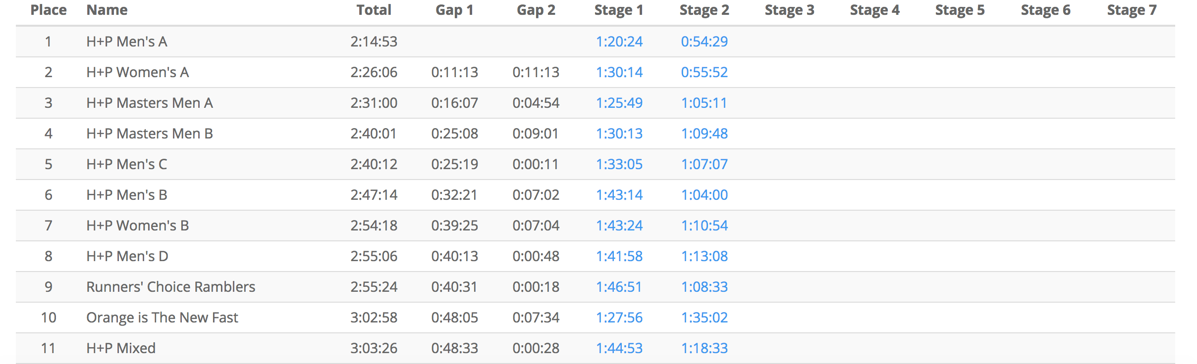 The masters women have some work to do, but there are still 5 stages to go and they have a VERY strong anchor in Robyn as they chase their masters women’s record! Full Results.