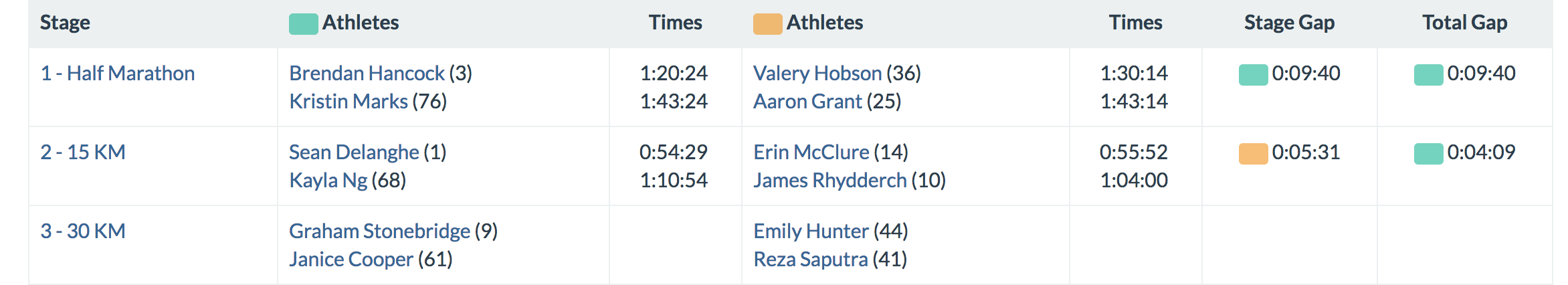 In the Men’s A and Women’s B vs. Women’s A and Men’s B challenge, things just got a little closer! With Both Erin (55:52) and James (1:04) having strong races, the gap was closed on Coach Sean (54:29) and Kayla (1:10:54) by 5 minutes. The Men’s A and Women’s B team STILL leads, but by a mere 4 minutes with lots of racing still to come. Full Results.