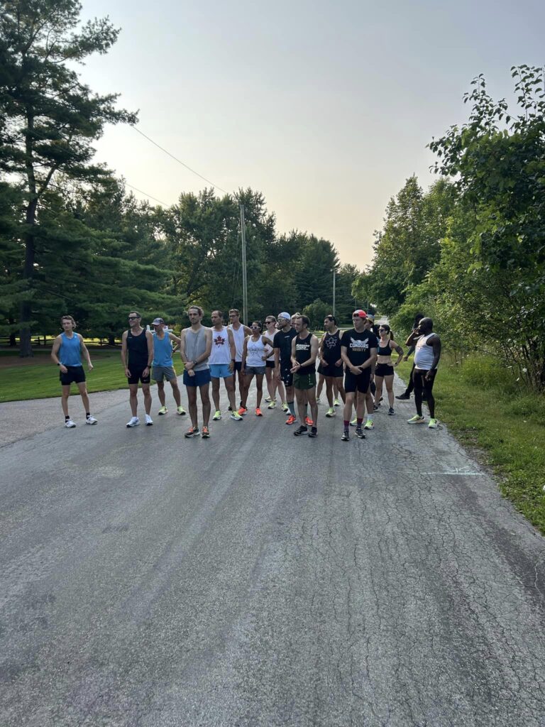In the mile, Derek took the W in 4:59 with Kurt not that far behind in 5:12. Marta was the top woman on the day with a time of 6:02!