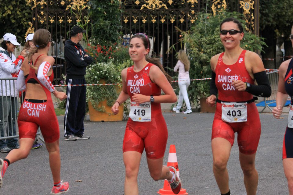 | Gill finishing up loop #1 of her 10k along with her Canadian teammates |