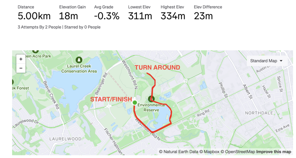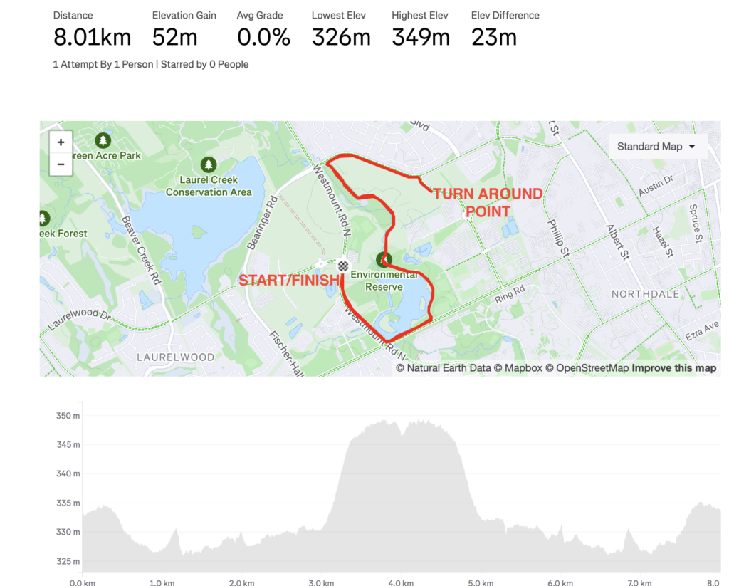 We’re going to make the most of the situation by doing an out and back option for both the 5K and 8K distances. For the 8K it’s basically the same amount of trail/ pavement mix along with seeing your competitors a little more often! For the 5K, it’s definitely more trail than we previously planed, but definitely less elevation- hopefully it runs just as fast. I (coach Sean) ran both courses today and the trail is in great shape!